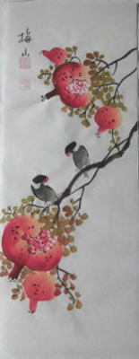 牡丹は富の象徴、ざくろは子孫の繁栄、