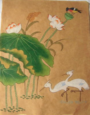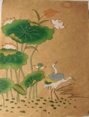 民衆が家族の幸せを願って描いたといわれる花鳥の民画。