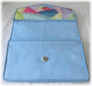 2つの札入れ、奥にも深い収納口裏:ファスナー部分は小銭入れに 1 水色 ¥2,600 2 青 ¥2,600 3 薄緑 ¥2,600 4 赤 ¥2,600 5 黄 ¥2,600